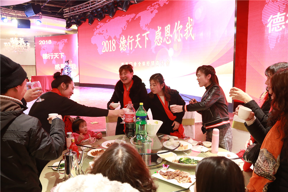 2017年 2月3日焦作嘉美門業(yè)有限公司為答謝新老客戶,在焦作艷陽天酒店舉辦答謝會(huì),本次答謝會(huì)旨在與經(jīng)銷商分享勝利的喜悅,展望美好未來。活動(dòng)共邀請(qǐng)了全國各地經(jīng)銷商 200余人共赴盛會(huì),為新老客戶提供了一個(gè) 共敘友情、共謀發(fā)展的聚會(huì)。現(xiàn)場驚喜不斷,禮品不斷,掌聲不斷,預(yù)付款活動(dòng)更絡(luò)繹不絕。